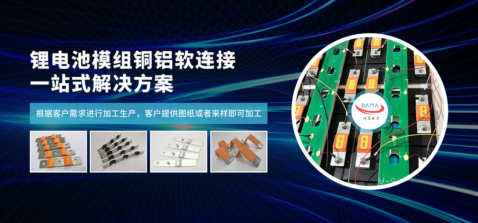 压焊软连接:压焊是将铜箔叠片部分压在一起,采用分子扩散焊,通过大电流加热压焊成型;铜箔: 0.05mm至0.3mm厚。